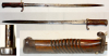 Deutsches Bajonett 98 lang, seltene frühe Ausführung mit einteiliger Griffschale, datiert 1901, die Klinge fleckig, Metall ansonsten mit brauner Patina, ohne Scheide