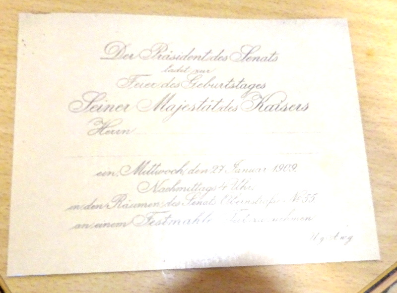 absolut TOP Rarität - sehr seltene Einladungskarte zum Geburtstag vom deutschen Kaiser Wilhelm zu seinem Geburtstag 1909; solche Einladungen haben seinerzeit nur der absolute Hochadel erhalten und wurden oftmals dann auch weggeschmissen. Somit absolut top top selten. Und noch dazu handelt es sich hier um eine blanko (also nicht ausgefüllt) Einladungskarte und die stammt direkt aus dem Palast des Kaisers; absolut top seltenes Stück Zeitgeschichte, dass so gut wie nie zu bekommen ist;