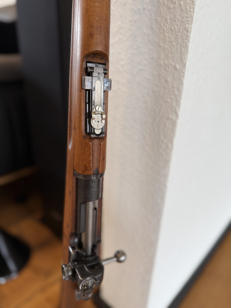 Carl Gustav M96 in 6,5x55 aus 1922 mit Söderin Diopter, Waffen Nr. 499426, alles nummerngleich. Gewehrriemen und Bedienungsanleitung in Englisch ist inklusive.