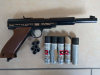 Es handelt sich um eine Einzellader-Luftpistole, die Schrot verschießt.