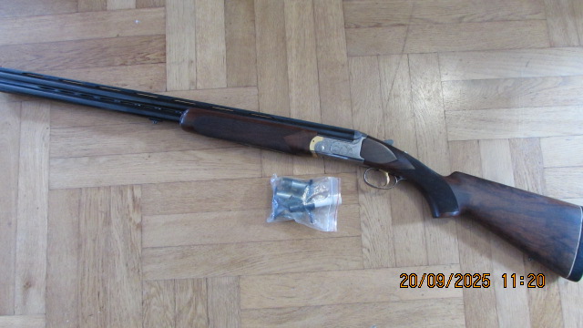UPE ist ca. 3500,00, Jagd BDF mit Silberlotverbindung, ventilierte Laufschiene, Einabzug, Ejektoren, Umschalt-Schiebesicherung auf dem Kolbenhals, leicht rechts geschränkt, der Verschluss stramm und dicht, 5 Mobilchokes (Mod., I/C, I/M, 2x Cyl.) und Choke-Schlüssel, silbergraue Stahlbasküle, Gravur mit Enten links, Rebhühnern rechts, Fasan unten, gültiger Beschuss ist vorhanden (mit Stahlschrotbeschuss)