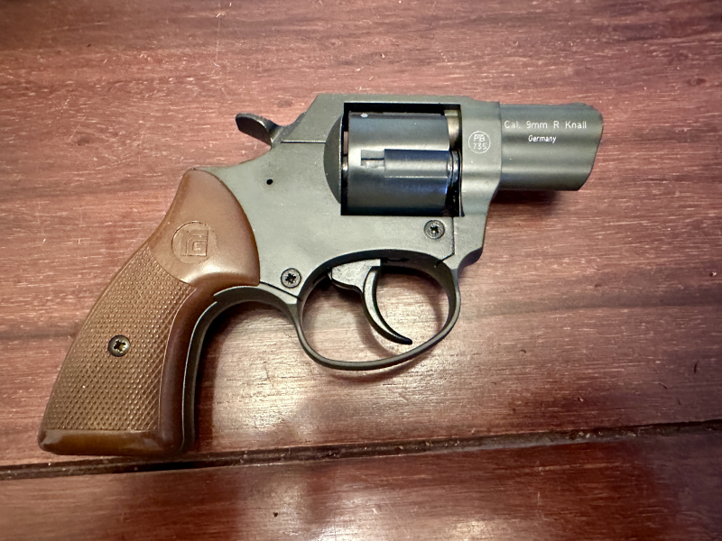 Gas-Signalrevolver Röhm RG59 brüniert mit Kunststoffgriffschalen.
