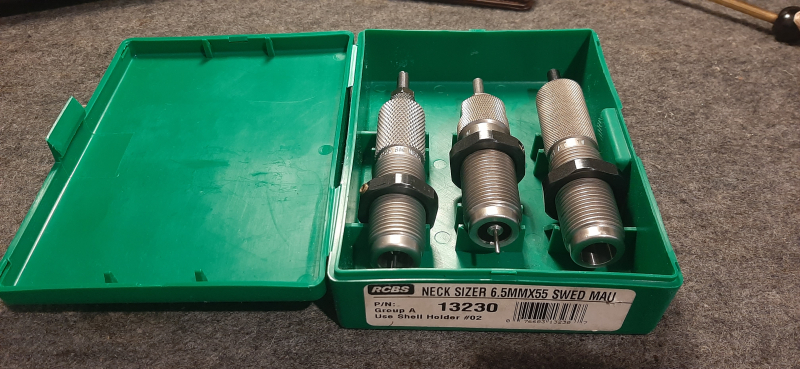 Biete aus einem Nachlass einen Matritzensatz 6,5x55 SE. Bestehend aus FL, Neck und Seat Matrizen.