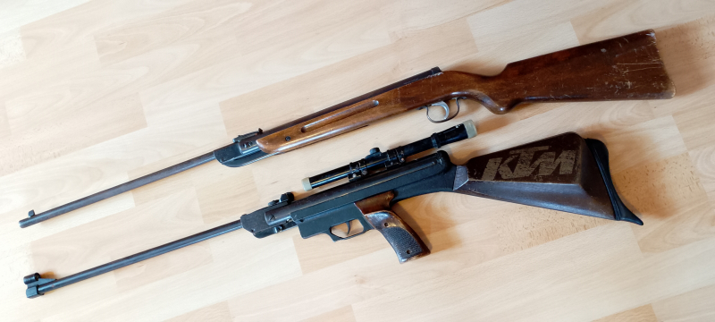 Zwei Stück Sammler-Luftgewehre Diana Model 27 und Gamo Model 68 "Sturmgewehr". Spannen und "abschlagen" funktioniert. Druck vorhanden, Diabolo verlässt den Lauf;-) Auf Grund des Alters aber ausdrücklich Verkauf als defekt, ab einem Euro! Hier die Details unter dem folgendem Link: http://www.muzzle.de/N7/Druckluft/Diana_27/diana_27.html https://www.co2air.de/thread/81259-gamo-mod-68/