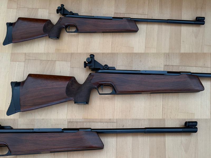 Sammlungsauflösung: Aus Nachlass bieten Sie hier auf ein Luftgewehr Feinwerkbau Mod. 300 S in einem wirklich guten Zustand. Das Modell 300 S zeichnet sich durch eine stabile Bauart und hervorragende Schussleistung aus. Seit vielen Jahren eines der beliebtesten Matchgewehre. Die originale Brünierung ist sehr gut, der originale Nussbaum-Schaft ist ebenfalls sehr gepflegt und zeigt nur wenig Gebrauchsspuren. Das sehr solide verarbeitete Feinwerkbau Luftgewehr Modell 300 S im Kaliber 4,5mm / .177 muss man nicht viel schreiben, das Modell hat Maßstäbe gesetzt und ist eigentlich unverwüstlich.Es wurde bereits eine neue Lauf-Dichtung (Blau, original Feinwerkbau) verbaut. Das Gewehr hat hervorragenden Druck (V0=184m/s) und schießt sehr präzise. Ein wirklich schönes Stück im Originalzustand, siehe Fotos. Sehr selten in diesen klasse Zustand und auch ideal für den Sammler.