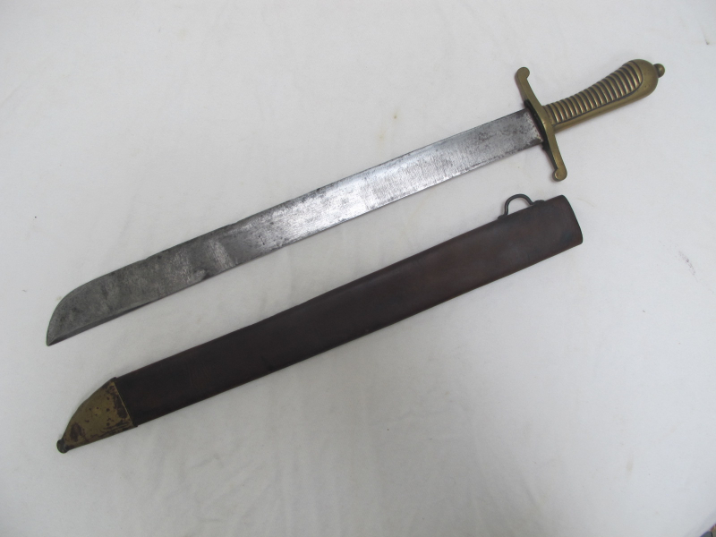 Schönes unbefummeltes bayrisches Faschinenmesser Modell 1830. Mit origjnaler zugehöriger Scheide. Parierstange mit Waffennummer 100, Scheide mit Kammerstempel B.1.R.7.17 und 153. Gesamtlänge ohne Scheide 67 cm, Klingenlänge 47 cm, Klingenbreite an der breitesten Stelle 4,0 cm. Schöner Zustand, siehe Fotos. Privatverkauf.