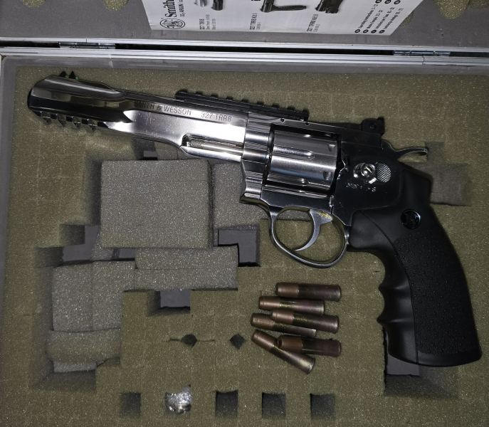 Hallo, biete hier von Smith&Wesson die 327 TRR8 in chrom CO2 in 4,5mm BB an. Waffe ist aus metall und hat kein blowback.