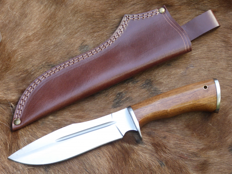 Das Formschöne Blatt hat eine Schneide mit einem leichten Hohlschliff und eine Hohlkehle. Heft und Knauf sind ebenfalls aus Stahl.