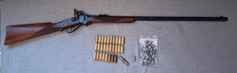 Ich verkaufe hier aus dem Nachlass eines leider jüngst verstorbenen Schützenfreundes für die Witwe eine .54er Zoli sharps mit 30 Messinghülsen für .54er Pedersoli "modern" Geschosse + 28 .54er Geschosse, aus denen sich Papierpatronen fertigen lassen (die Geschosse habe ich gegossen. Die Kokille kann bei Interesse mit erworben werden). Die Waffe ist natürlich amtlich beschossen.