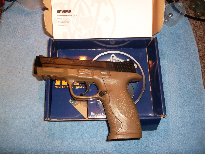 CO2Pistole S&W Military&Police im Kaliber 4,5mmBB.In Dark Earth Brown(Selten) aus Sammlung.Ist noch die alte Ausführung,welche noch Konservendosen durchschlägt.Die neuen Modelle sind schwächer.Wurde sofort in meine Sammlung übernommen,als die Waffe auf den Markt kam.Wird mit 12gr.CO2-Kapseln betriebenPrivatverkauf ohne Garantie und Rücknahme sowie Gewährleistung.Versicherter Versand.Wird in Orginalverpackung mit Bedienungsanleitung geliefert.Verkauf ab 18Jahren mit Altersnachweis