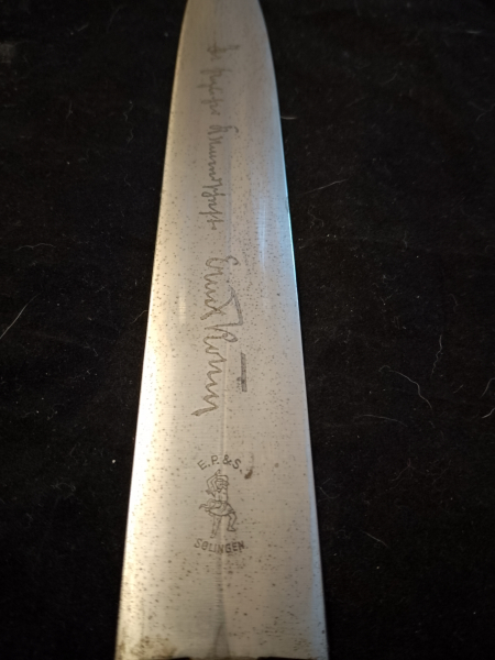 Aus Nachlass stammt diese einzelne Klinge für einen schwarzen Dienstdolch mit der Widmung Ernst Röhm.