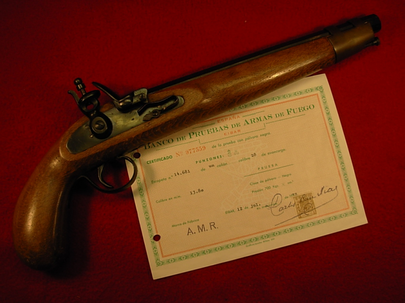 Vorderlader Steinschloss Pistole mit Beschuss Zertifikat – ungeschossener Zustand – glatter Lauf –