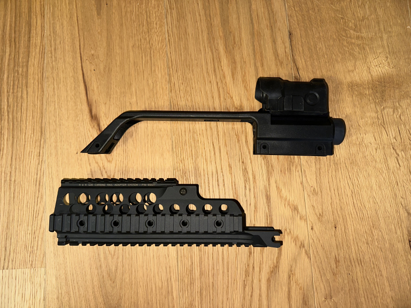Hallo, zum Verkauf kommt ein Originaler G36 NEUER Tragebügel Satz mit Picatinny sowie Hensoldt RSA ZEISS Rotpunkt Visier sowie Gummi Cover und kostenlos obendrauf ein knight armament G36 Bundeswehr KSK Handschutz. Die Teile sind so nicht im Freien Handel zu erwerben. Neupreis war damals 2100 euro für alles. Zielfernrohr frei von Staubeinschlüssen oder Kratzern. Ihr bekommt alles was auf dem Bild zusehen ist.