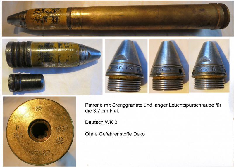 Patrone 3,7 cm Flak,, Sprenggranate L`Spur,,,,,Deko