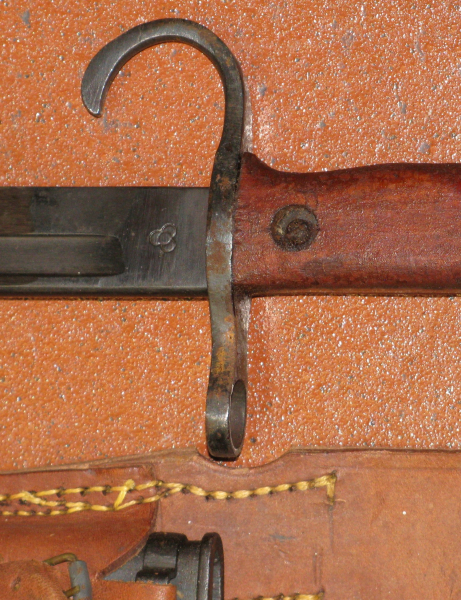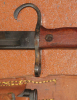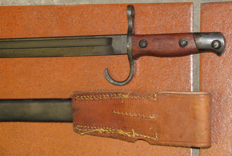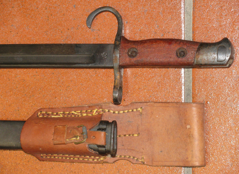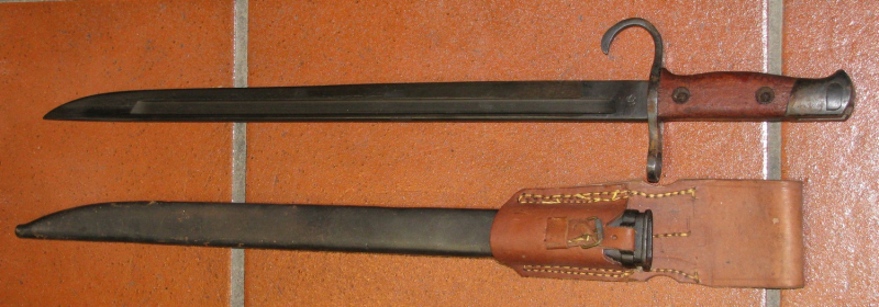 Zum Verkauf kommt ein Bajonett mit Eisenscheide und Lederkoppelschuh