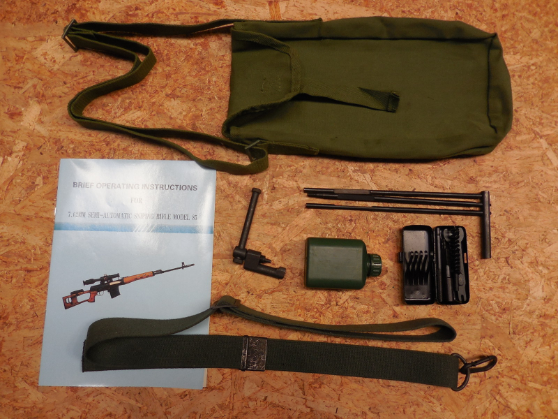 Vollständiges Zubehör Set für den Dragunov SSG85 Sniper. Englischsprachige Bedienungsanleitung, Trageriemen, Optiktasche, Korntreiber, Reinigungsset in der originalen Stahlblechdose, Öler. Die Abbildungen sind Teil des Angebotes. Der angebotene Artikel entspricht dem geltenden österreichischen Recht. Sollte es rechtliche Probleme im Empfängerland geben, so haftet der Käufer dafür! Der Versand erfolgt ausschließlich zu meinen Bedingungen und immer in versicherter Sendung. Die Versandkosten betragen innerhalb Österreichs €7,-- nach Deutschland, Belgien, Niederlande, Dänemark, Luxemburg, Tschechien, Slowakei, Ungarn, Slowenien, Polen, Rumänien €14,--, nach Frankreich, Kroatien, Monaco und Italien €16,-- und nach Finnland, Portugal, Spanien, Schweden, Estland, Lettland, Litauen, Bulgarien, Republik Irland €22,--. Versand in andere Länder bitte vor dem Bieten anfragen! Kein Versand auf Inseln! Gerne biete ich kombinierten Versand mehrerer Lose in einem Paket an. Die Ware bleibt bis zur vollständigen Bezahlung mein persönliches Eigentum. Ich erhoffe einen Zahlungseingang binnen 5 Tagen nach Auktionsende. Sollte eine Zahlung innerhalb dieser Frist nicht möglich sein, dann bitte einfach nicht mitbieten! Erfüllungsort und Gerichtsstand ist 3040 Neulengbach, Niederösterreich. Bitte auch meine anderen Auktionen beachten! ALLE MEINE BILDER ENTSPRECHEN DEM TATSÄCHLICHEN ZUSTAND DER ANGEBOTETEN WARE UND SIND NICHT NACHTRÄGLICH BEARBEIT!