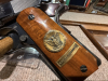 In den Holzgriffschalen eingelassene Medaillions links und rechts !! Brünierung top und einwandfrei!!