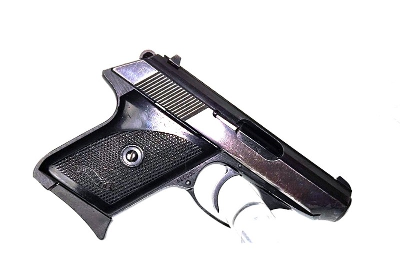 Schwarze Kunststoffgriffschalen mit Fischhaut und Walther-Schleife.