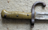 im getragenen Zustand, Messingbeschläge, Parierstange leicht narbig und gestempelt mit 500 8 sowie beidseitig mehrere kleine Stempel, auf dem Griff ist eine Nummer, Klinge hat ein Zeichen.