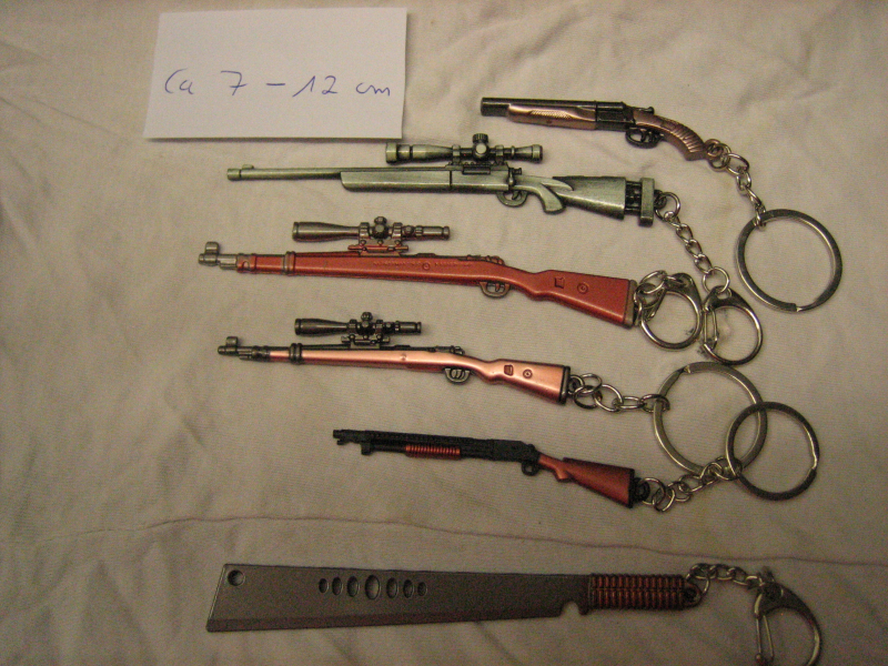 Hier stehen 5 neue Miniatur Gewehre für Sammler voll Metall zum Verkauf . Da Privat Verkauf ohne Garantie und Rücknahme . Versadn 3 Euro als Warensendung oder 5 Euro versichert , könnt selbst entscheiden ( Plus eine Machete )