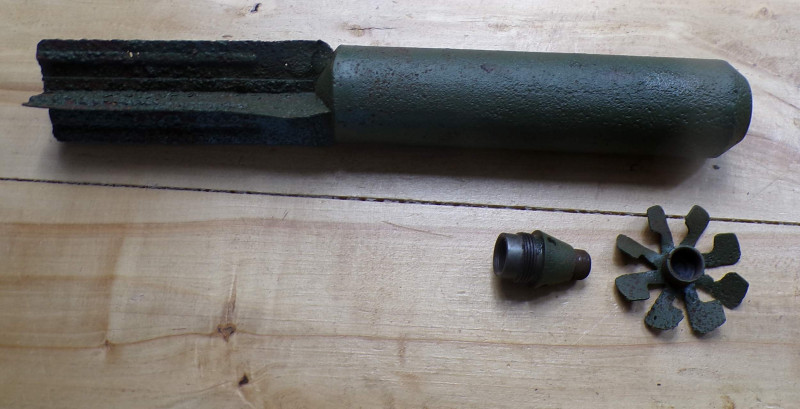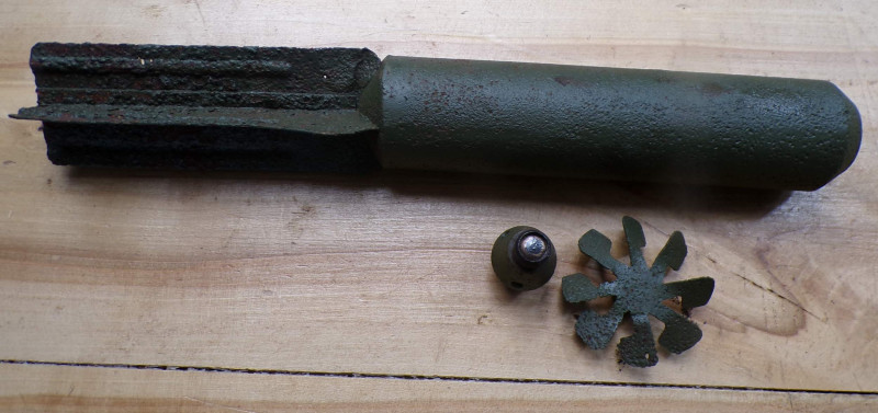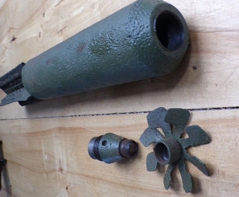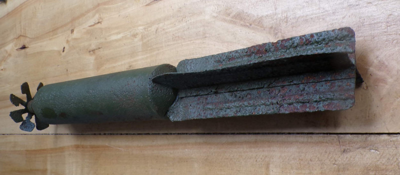 Originale russische Fliegerbombe gew.2,5kg von WK2. Baujahr 1940. Mit kompletes Zünder, neu gemalt, frei von gefährstoffen.