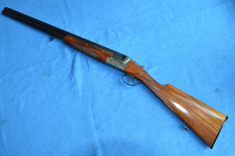 Hochwertige Flinte aus dem Hause Merkel, gefertigt von Büchsenmachermeistern und nicht von CNC Maschinen, in einem TOP Zustand, System nicht nur dicht sondern alles stramm und saugend laufend wie bei einer Neuwaffe. Waffe wurde augenscheinlich wohl nie wirklich benutzt. Gravierte Basküle, Signalstifte. Schön gemaserter Schaft in englischer Form, selten! Ejector.