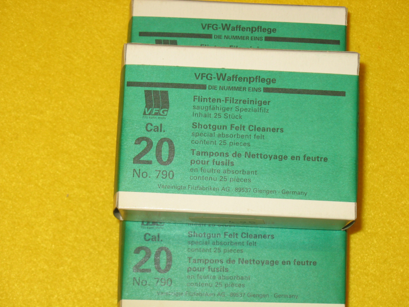 Biete hier drei Pack a 25 Stück VFG Laufreiniger, Flinten-Filzreiniger für cal. 20 zum ersteigern an.