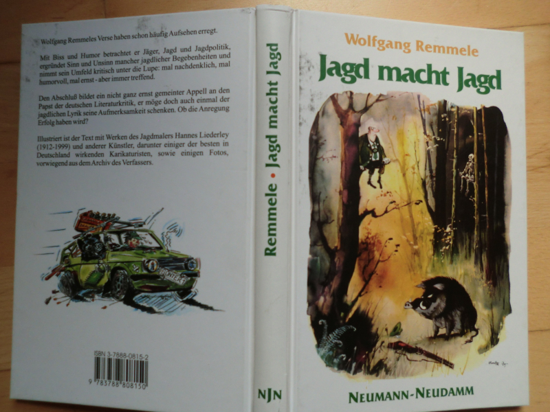 JAGD MACHT JAGD - Gereimte grüne Erlebnisse und Erfahrungen - von Wolfgang Remmele, Verlag Neumann-Neudamm 2003, 164 Seiten mit diversen Abbildungen und Zeichnungen u.a. von Hannes Liederlery - Inhalt u.a.: An der Tür meiner Jagdhütte / Wahre Freunde oder durch Worte allein kommt es nicht zur Freundschaft / Die Rentner-Band / Das Phantom von der Dieckerswiese / Stangen, Klasse I bis III oder Nix andres hams im Kopf als ihre blöden Hirsch' / Der Einstangen-Einser-Hirsch / Fliegende Hirsche / Babyhirsch und Riesenhirsch / Vom Glück auf vier Läufen / Wildschaden / Wildunfälle anders herum / und vieles andere mehr - Guter Zustand