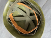 Alter US Stahlhelm mit Innenhelm und Tarnüberzug.