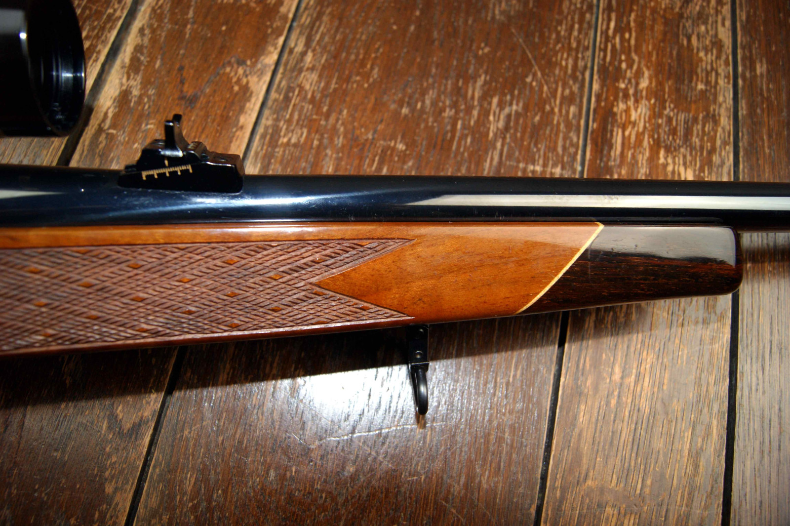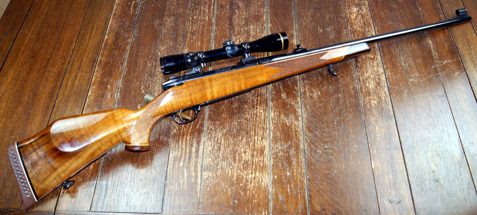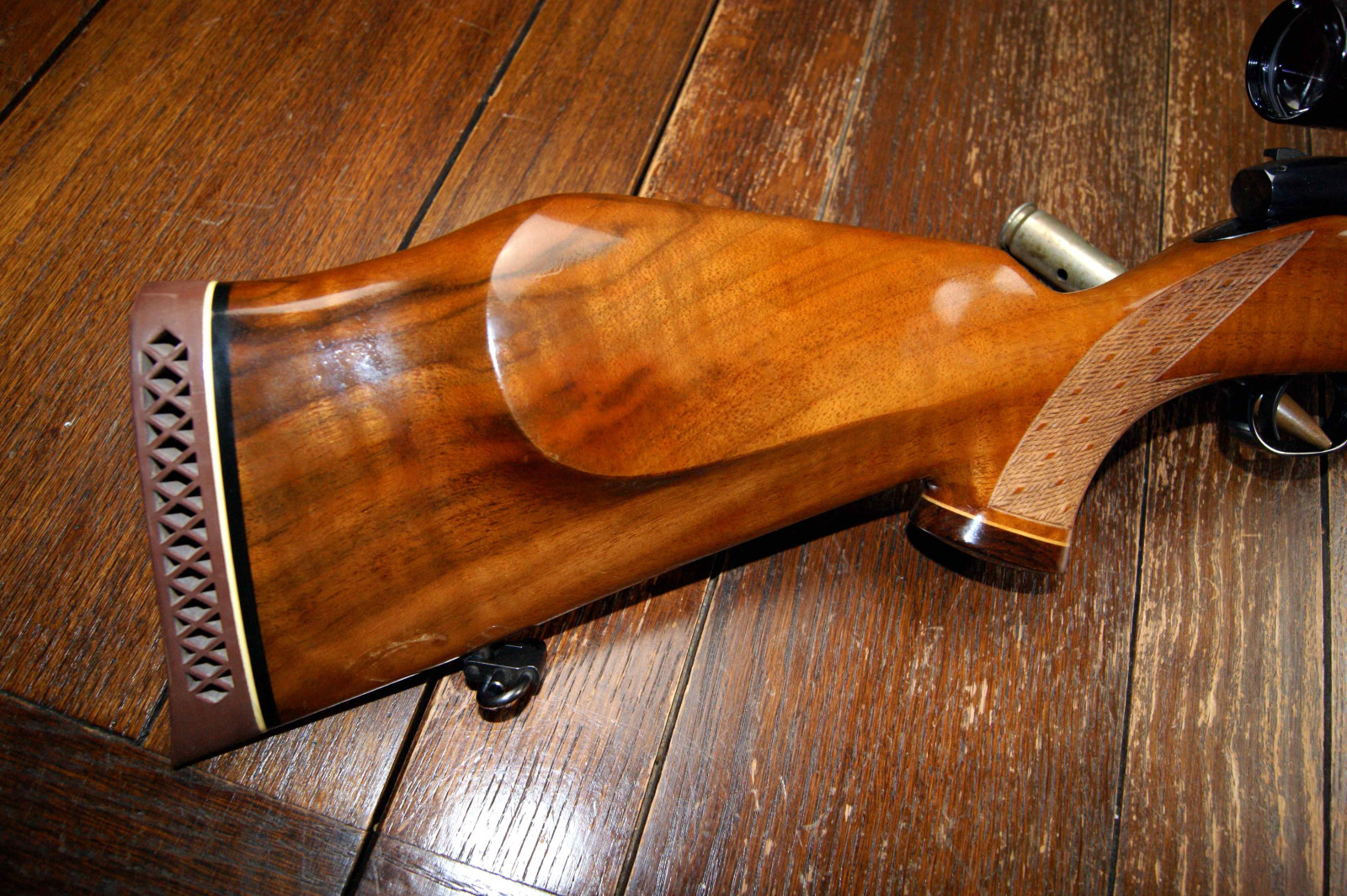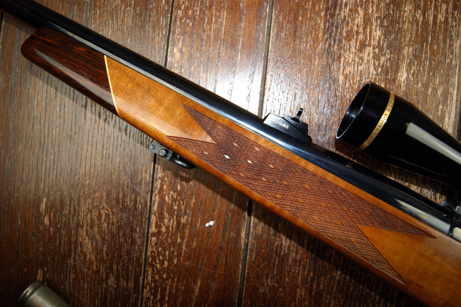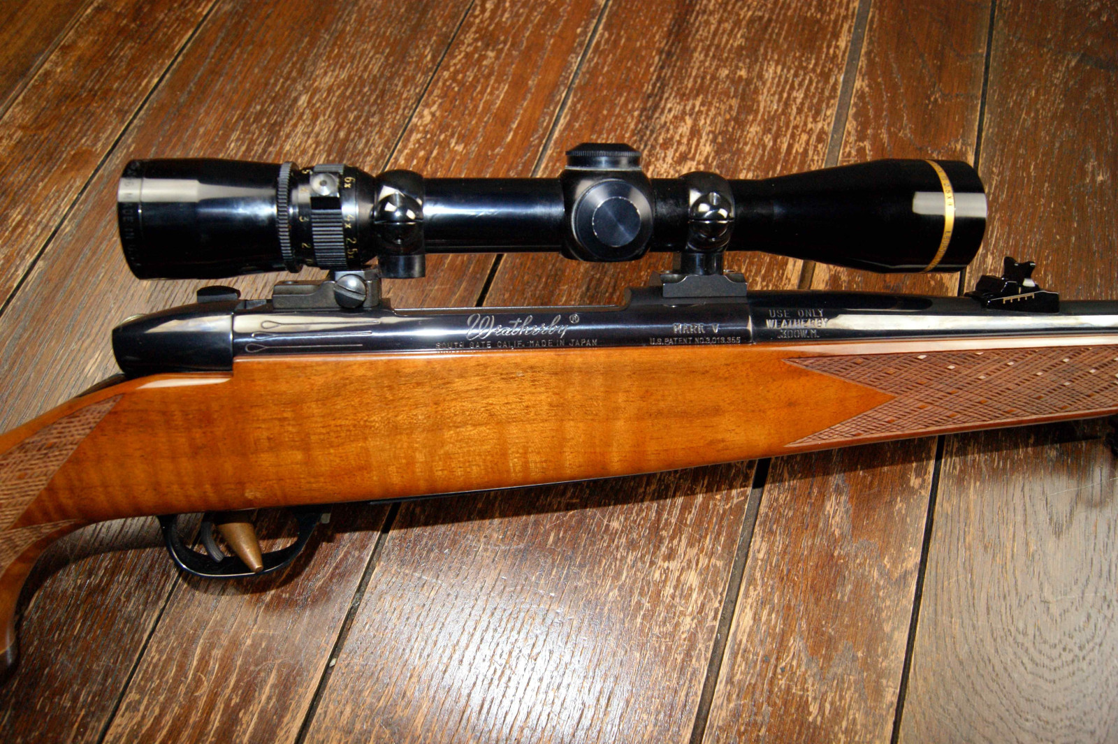 Weatherby Mark V Kaliber .300 Weatherby Magnum LINKSSYSTEM, sehr gut erhaltene Büchse, montiert ist ein Leupold Vari-X 2,5-8 ( das ZF muß repariert werden da sich das Absehen nicht mehr verstellen läßt ) , die Waffe hat einen Flintenabzug, Schaftmaß von Schaftkappenmitte bis zum Abzug 34 cm. Leider ist die Waffe noch nicht beschossen von daher erfolgt der Verkauf nur an Händler oder Export.