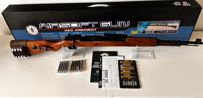 Verkaufe aus meiner Waffensammlung einen K98 Karabiner in einem Bestzustand (Zustand siehe auch Bilder). Die Waffe besitzt einen Echtholz-Schaft und besteht auch sonst aus Metal und besitzt einen Hülsenauswurf für die beiliegenden Aluminium-Shells. Mit dem Gas-Bolt-Action Betrieb sind bis zu 1,9 Joule möglich. Neupreis dieser Waffe liegt aktuell bei ca. 420€. Die Waffe wurde lediglich auf meinem privaten Schiessstand 5-6 mal Geschossen und war nie! auf einem „Spielfeld“. Ich möchte mir was neues zulegen, daher trenne ich mich von der Waffe… Neupreis für das Gesamtpaket liegt aktuell für alles bei ca. 545 €!