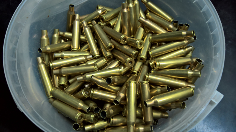 Die Hülsen sind im Tumbler gereinigt, mittels RCBS-Matrize vollkalibriert worden. Die Hülsen wurden auf 54,80 mm gekürzt und entgratet. Die Zündglocke wurde gereinigt.