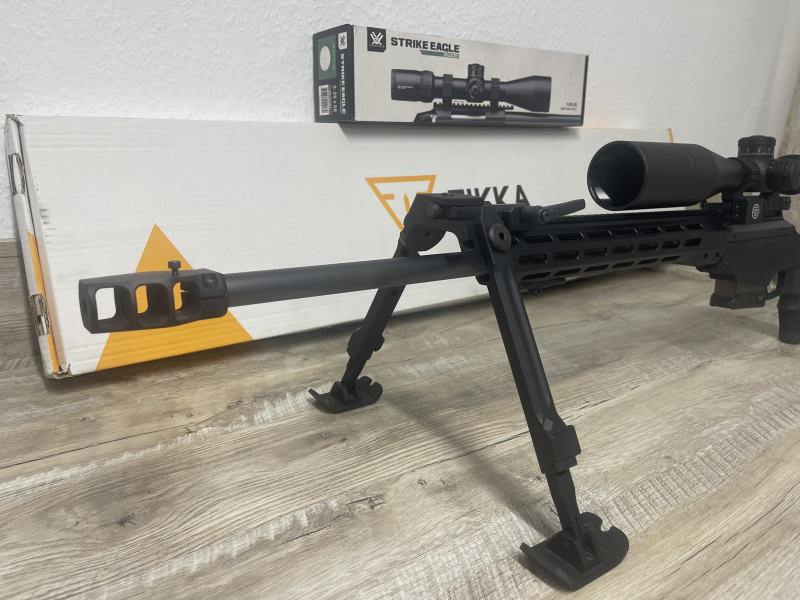 Hallo zum Verkauf steht eine Tikka T3X tac a1 in .308win mit einem 24“ Lauf, mit einer Offset Blockmontage von ERA-TAC diese hat 20 Moa vor Neigung, darauf ist ein Vortex Strike Eagle 5-25x56 EBR-7C in MRAD verbaut, des weiteren ist ein Fortmeier 2 Bein mit Picantinny Adapter 6 Uhr verbaut, außerdem ist eine Mündungsbremse von Pettersen Gun Works verbaut welche den Rückstoß gegenüber der originalen deutlich verringert.Das SG Pulse gehört nicht zur Auktion und wird nicht mitverkauft. Die Waffe habe ich 2021 gekauft und seit dem habe ich 650 Schuss damit gemacht.
