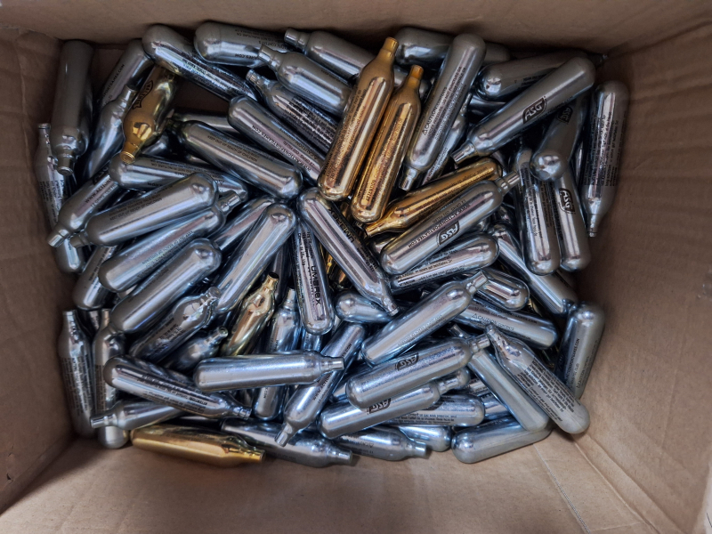 Versteigere 100 Stück CO2-Kapseln für Druckluftwaffen, Zustand neu, verschiedene Hersteller (Walther, Umarex, ASG).