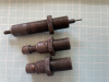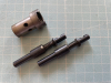 Die Matrizen sind nicht gestempelt oder sonst gekennzeichnet. Das Aßengewinde scheint ein Feingewinde zu sein. Der Durchmesser der Matrizen beträgt 15,25mm=0,6 Zoll. Es könnte sich um einen KW-Satz handeln, denn eine Matrize hat einen Aufweiter, eine andere einen Setzstempel für Flachkopfgeschosse. Die Spindeln sind so fest, dass sie sich nicht ohne Gewalt oder Chemie lösen lassen.