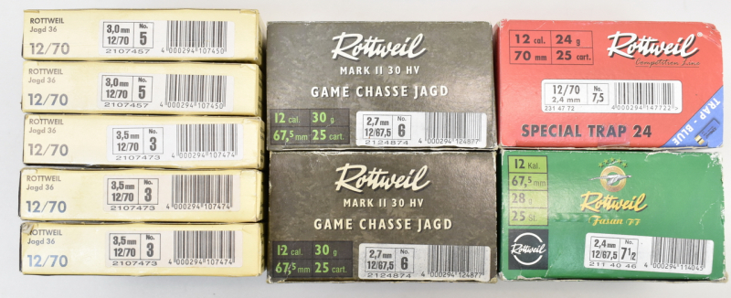 150 diverse Rottweil Schrotpatronen im Kaliber 12