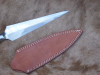 Unsere elegante Jagdspeerspitze wurde aus Kohlenstoffstahl geschmiedet. Die Härte liegt bei ca 50° HRC. Die Spitze hat einen leichten Mittelgrat, die Schneiden sind scharf und werden vor der Auslieferung nochmal abgezogen. Die gesamte Spitze schimmert bläulich durch die Härtung.Im Lieferumfang ist eine Aufsteckscheide aus Sattelleder enthalten
