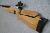 Schichtholzschaft in sehr guter Erhaltung mit nur geringen Gebrauchsspuren und ein paar Aufkleberchen.