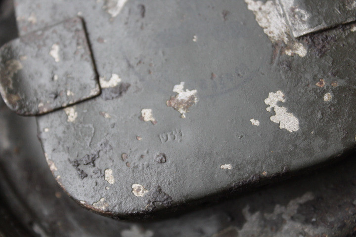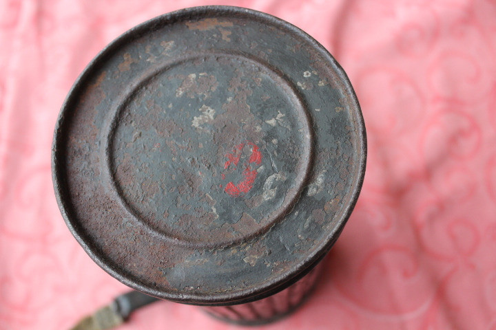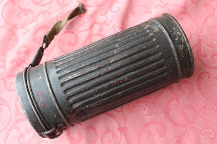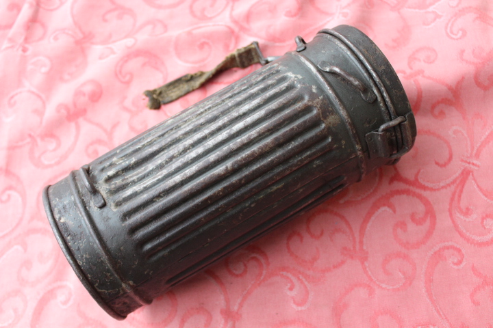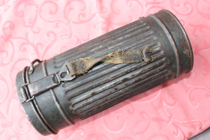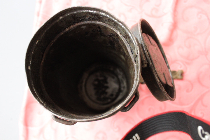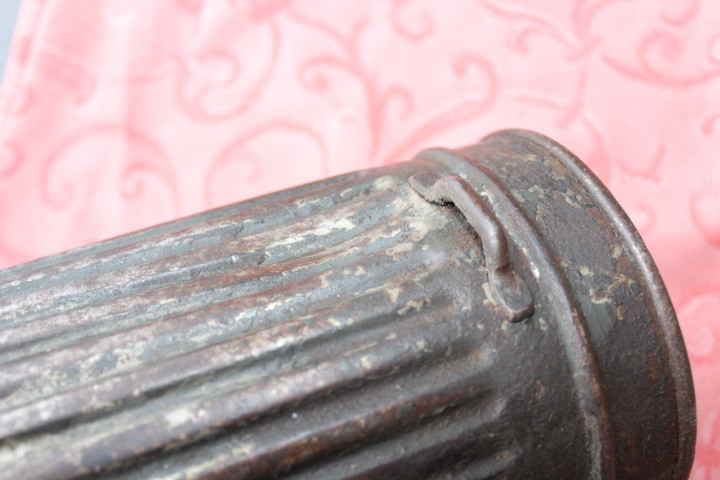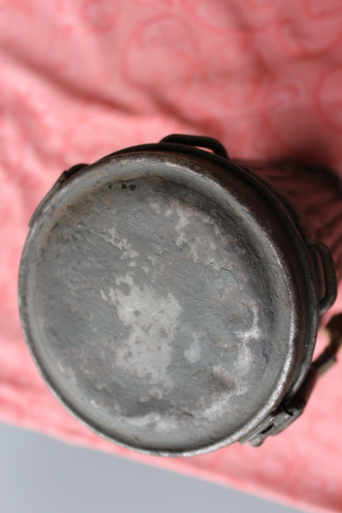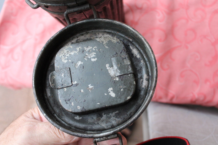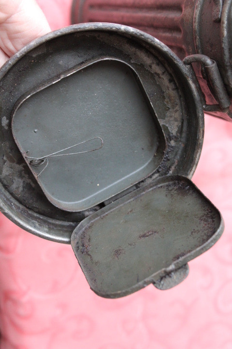 Noch nicht gereinigt. War wohl lange im Kriegseinsatz. Etwas Beulen an der Seite und am Deckel. Verschlussdeckel funktionieren noch gut..