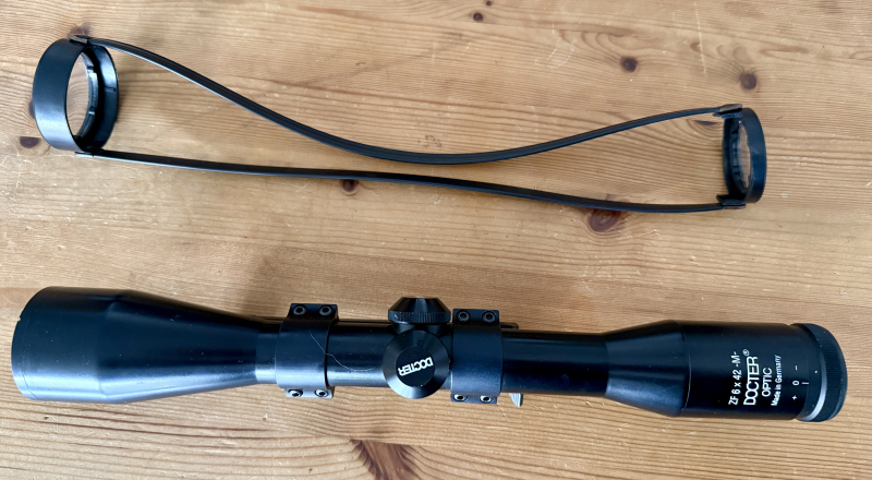 Docter Zielfernrohr ZF 6x42-M- mit Schiene, Absehen: 1• Gewicht ca.: 530 g• Objektivdurchmesser: 42 cm• Vergrößerung: 6fach• Made in Germanymit Schiene Zustand des Zielfernrohres: Das Zielfernrohr ist im guten, gebrauchten Zustand, siehe Fotos.