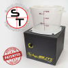 Die besondere Anordnung der Neodym-Magnete auf dem Drehteller und ihre unterschiedliche Mittendrehung im Vergleich zur Positionsmitte des Tanks erzeugen einen „Rütteleffekt“ und die Messinge werden im Kunststofftank gemischt.