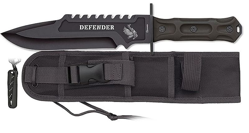 - Klingenstärke: 3,8 mm - Griffmaterial: Schwarz gummierter ABS Kunststoff - sehr angenehme Handlage - Robuste, funktionale Nylonscheide