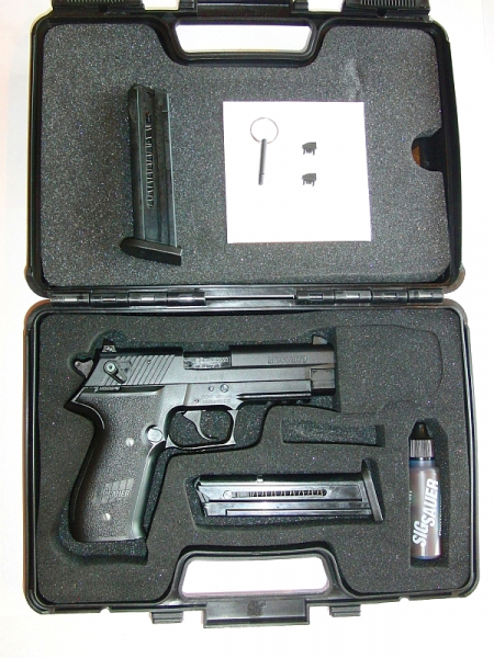 Die SIG Sauer Mosquito ist eine Kleinkaliberpistole. Unter dem Lauf befindet sich für diverse Anbauteile eine Picatinny-Schiene. Gewicht (ungeladen) 0,730kg, Lauflänge 101mm, Anzahl Züge 6, Offene Visierung. Die Sig Sauer Mosquito ist eine Gebrauchspistole, trotzdem ist sie sehr präzise. Die Visierung ist auch austauschbar, 3 verschiede Korne werden mitgeliefert. Die Kimme kann natürlich seitlich verstellt werden. Günstige Unterhaltungskosten für Munition. Die Ideale Anfängerwaffe - Sicher und präzise. Die Pistole ist in einem sehr guten Zustand (1-2) und wurde wenig geschossen - Schrankwaffe, minimale, normale Gebrauchsspuren (siehe Bilder). Das Angebot beinhaltet eine SIG Sauer Mosquito Selbstladepistole im Kal. .22lfB im nummerngleichen Originalkoffer! Dabei sind zwei 10 Schuß Magazine, gesamt 3 verschiedene Korne, 1 kleines Werkzeug für die Fallsicherung, kleine Flasche SIG Sauer Waffenöl (halb voll). Als extra Zubehör ist eine Original Sig Sauer Mosquito Polymer Brückenmontage, und ein SIG Sauer Point-Sign-Leuchtpunktvisier mit dabei!! Die Bedienungsanleitung bei Bedarf als Pdf Datei.