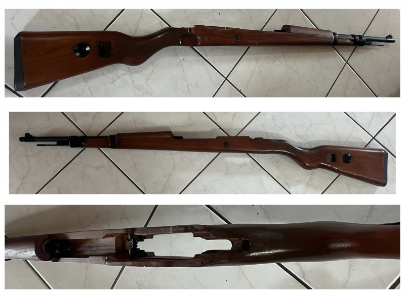 Speicherfund… Schaft Dekoschaft Karabiner 98 aus Holz gefertigt… wohl eine Anfertigung für die Wand die nicht dem Waffengesetz unterliegt… Bilder sind mit Bestandteil der Beschreibung… von privat keine Garantie und Rücknahme… gerne vor Abgabe eines Gebotes nach Terminabsprache vor Ort in Augenschein nehmen…