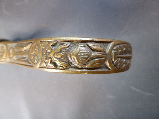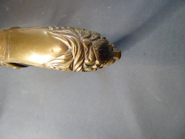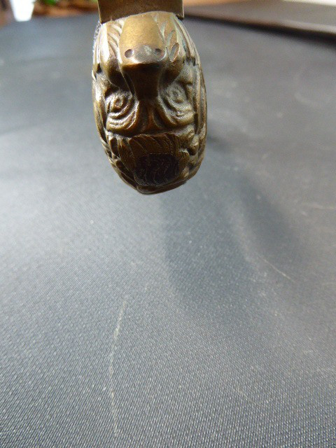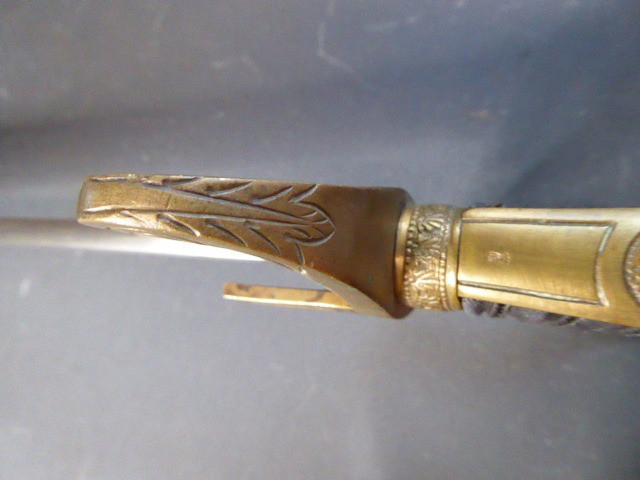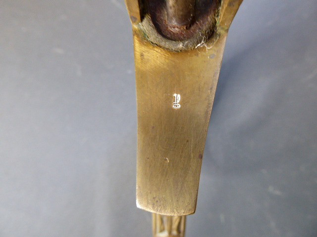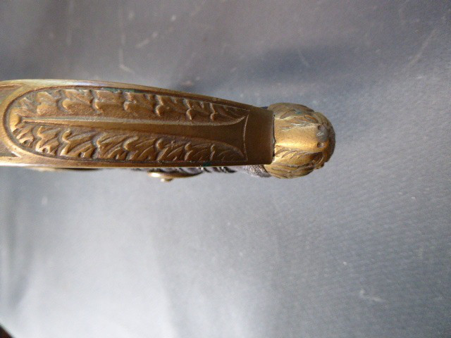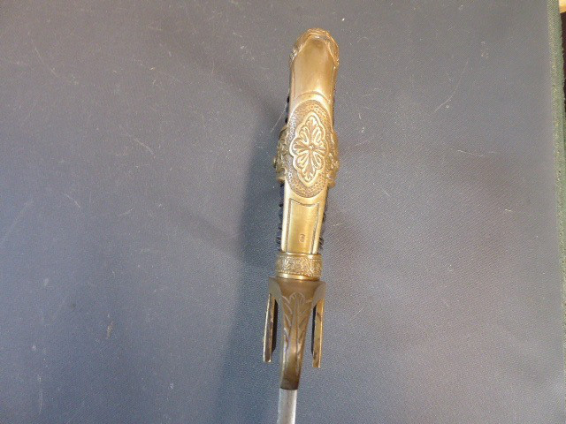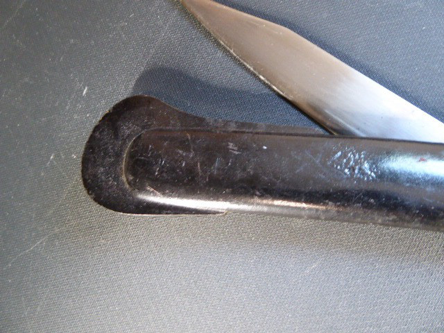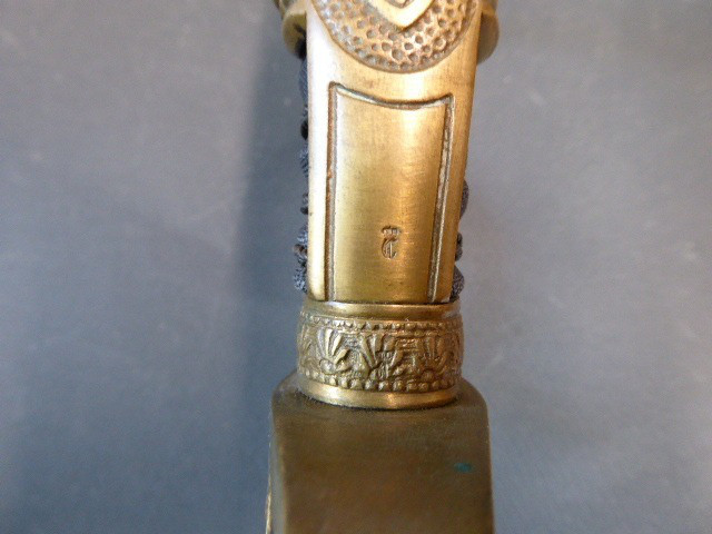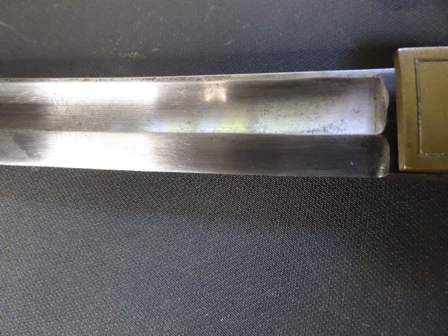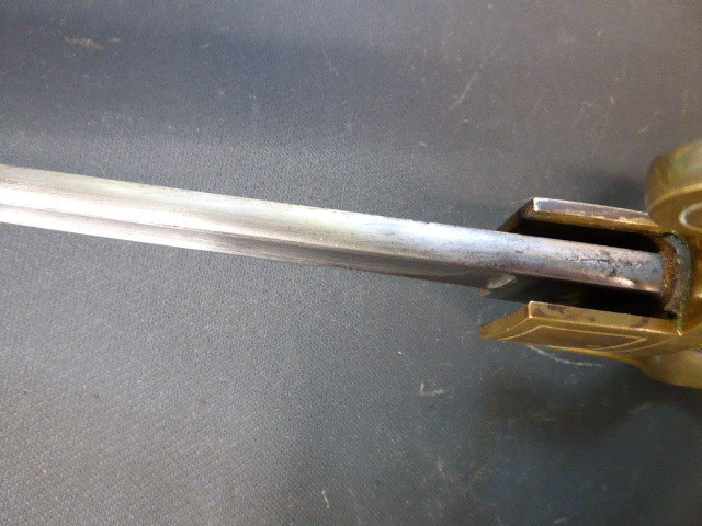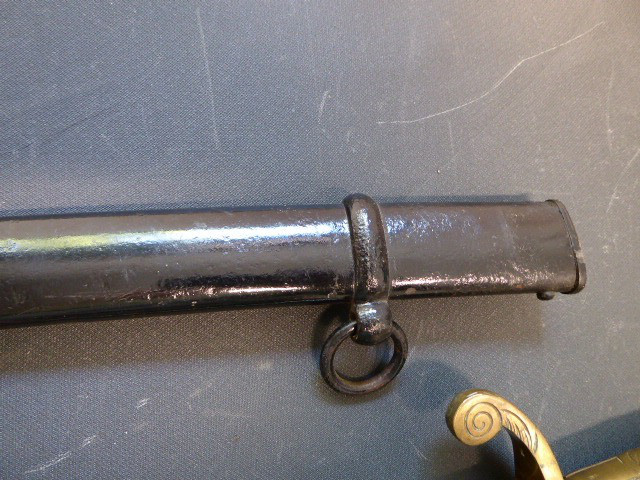 Aus meiner Sammlung gebe ich, ein alten Artillerie Wachtmeister Säbel Kammerstück in Seltener Ausführung, Scheide und Hersteller ab. Griff Holz mit Fischhaut ummantelt und zweifacher Drahtwicklungen. Ser großes Gefäß aus Messing mit Löwenkopf Kappe, alles mit Kammerstempel. Einschneidige breite und stark gekrümmte Klinge mit Panduren Spitze, beidseitig mit einer Kehlung, der Rücken W unter Krone und Punze, auf der Fehlschärfe Hersteller ALEX KOPPEL SOLINGEN. Scheide mit einem Tragering, auf dem Schlepper Kammerstempel, Scheide wurde mal Nachlackiert mit einigen kleinen Dellen und es fehlt eine kleine Schraube. Ein Selten Großer und breiter Säbel. Das Teil ist im Guten Sammelwürdigen Zustand. Alles andere entnehmen Sie Bitte den Fotos. Gesamtlänge: 101,5 cm, ohne Scheide: 98,5 cm, Klingenlänge: 84,7 cm, Klingenbreite: 3 cm. Kann zu jederzeit bei mir besichtigt werden. Privatauktion keine Rücknahme und Garantie.