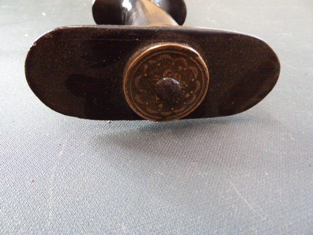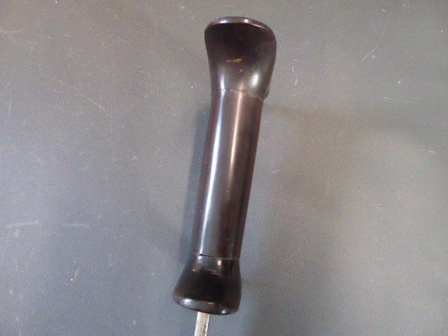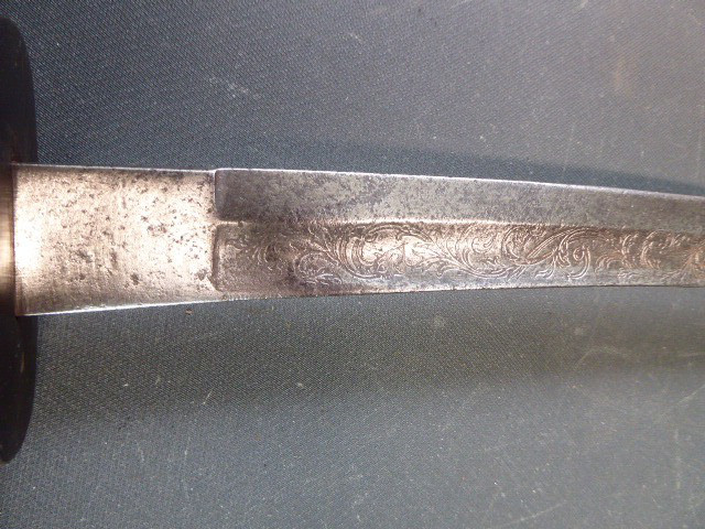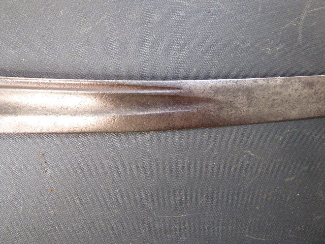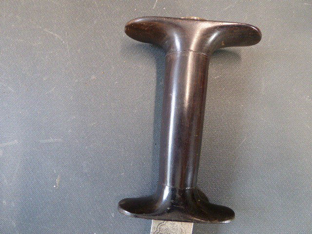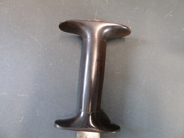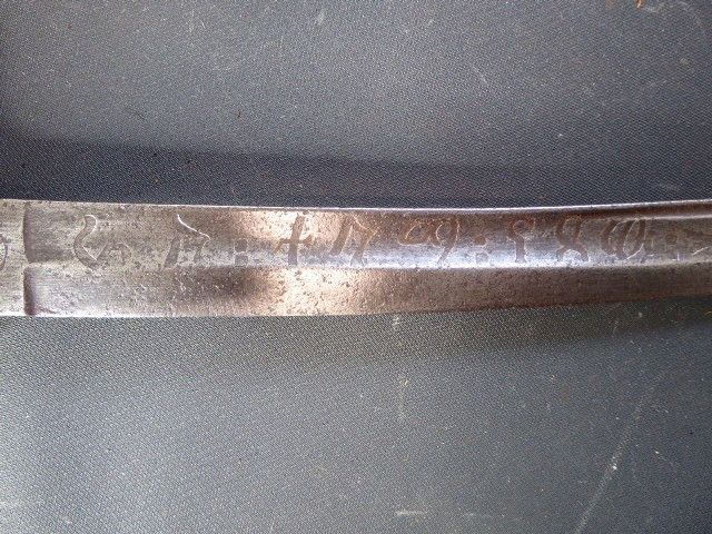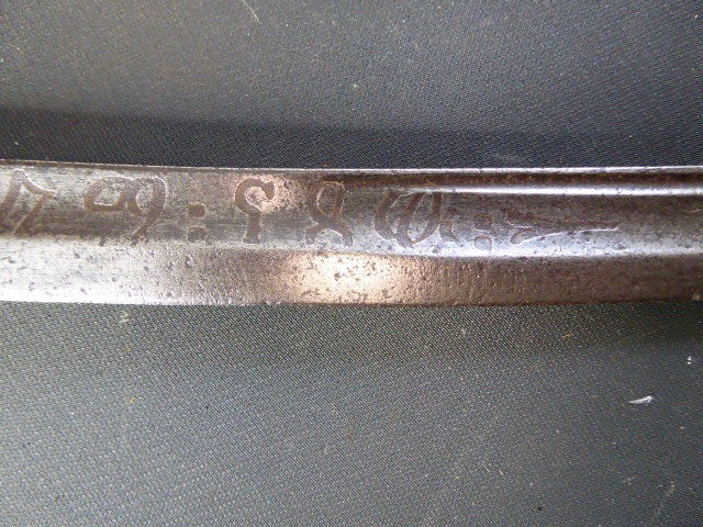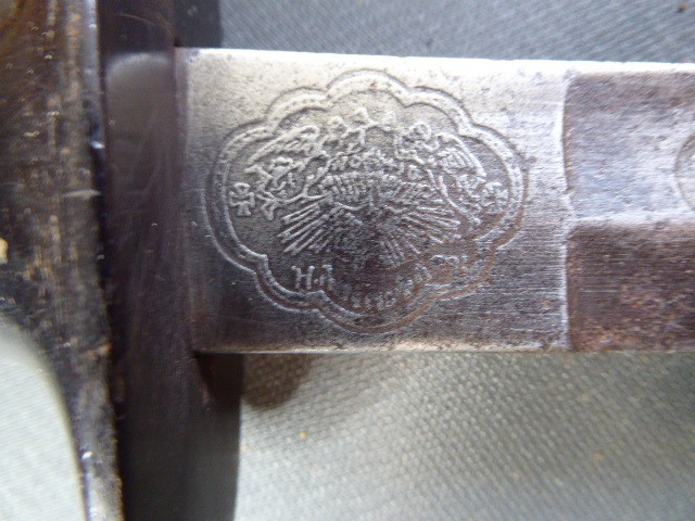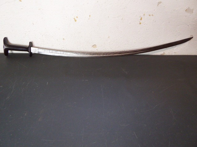 Aus meiner Sammlung gebe ich, ein altes langes Ägyptisches Shotel Schwert ohne Scheide beidseitig mit Ätzungen und Inschrift ab. Griff aus mehreren Teilen Horn, Vernietung mit Münze unterlegt. Einschneidige stark gekrümmte Klinge, beidseitig mit zwei Kehlungen und Ätzungen, eine Seite mit Inschrift und Wappen. Das Teil ist im Guten Sammelwürdigen Zustand. Alles andere entnehmen Sie Bitte den Fotos. Gesamtlänge: 104 cm, Klingenlänge: 90 cm, Klingenbreite: 2,9 cm. Kann zu jederzeit bei mir besichtigt werden. Privatauktion keine Rücknahme und Garantie.