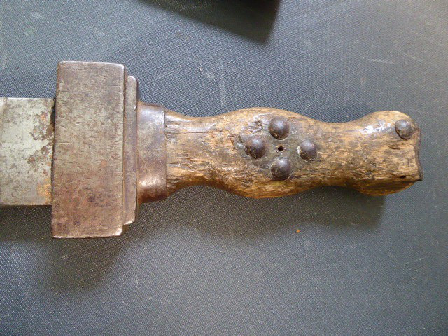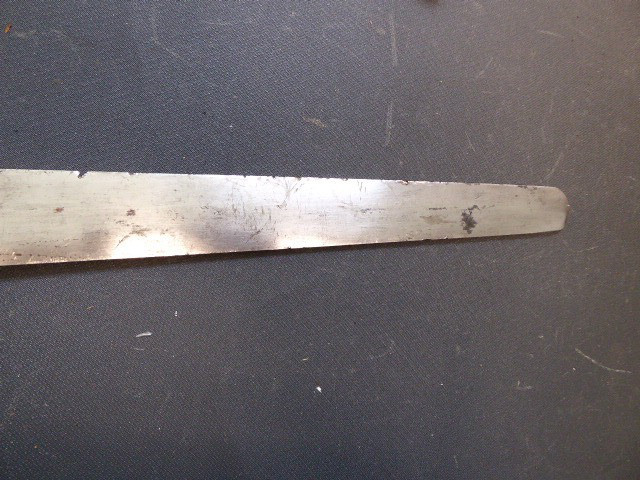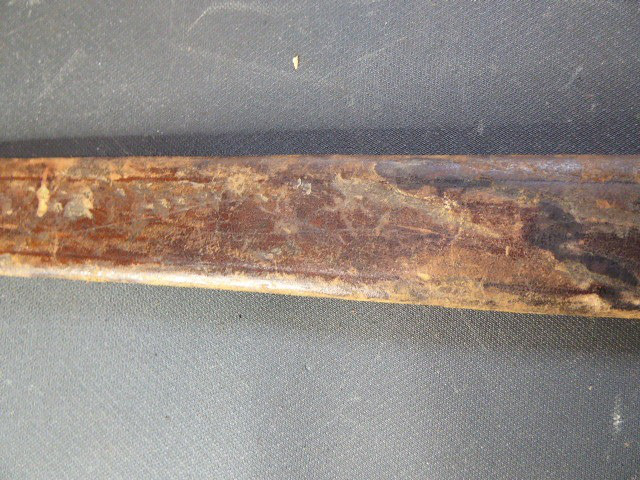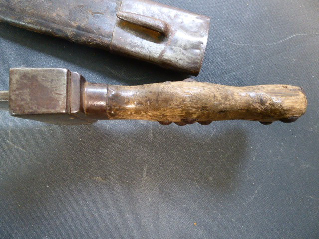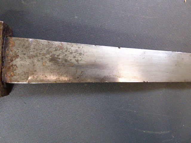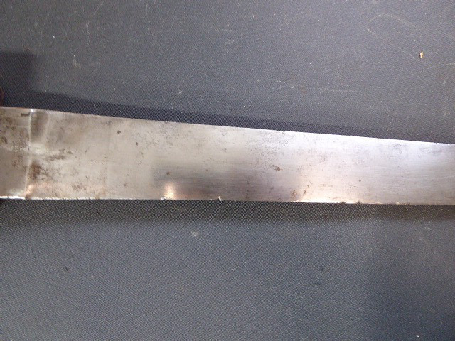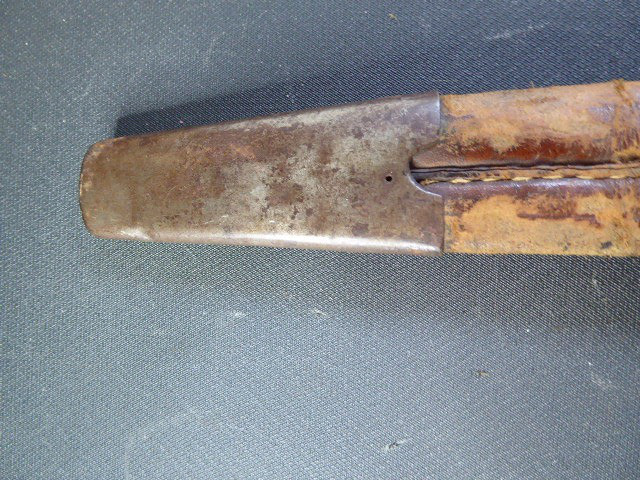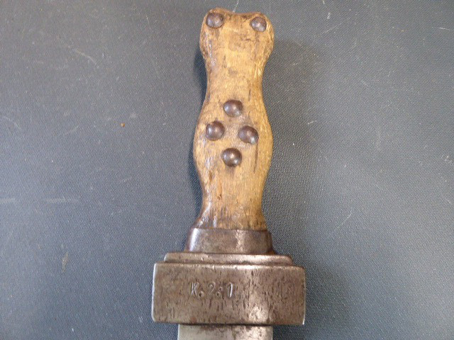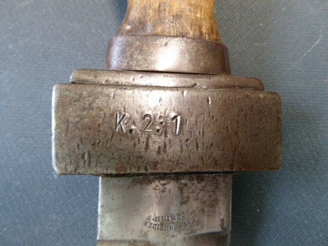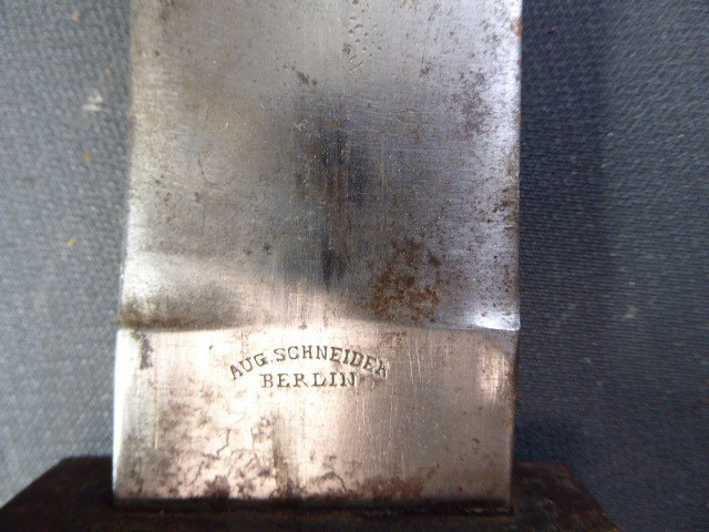 Aus meiner Sammlung gebe ich, ein altes Unbekanntes Faschinen Messer Lederscheide Hersteller AUGUST SCHNEIDER BERLIN ab. Kenner werden es sicherlich wissen wo das Teil einzuordnen ist. Griff Holz Beidseitig mit Eisennieten verziert, Griffabschluss Eisenplatte. Parierung Eisen mit Regiment Bezeichnung? K.2.1. auf der Stirnseite Nr.10420. Zweischneidige Klinge, vorne Rund, auf der Fehlschärfe Hersteller. Scheide Holz mit Leder ummantelt und zwei Eiserne Beschläge. Das Teil ist im Guten Sammelwürdigen Zustand. Alles andere entnehmen Sie Bitte den Fotos. Gesamtlänge:75,8 cm, ohne Scheide: 75,8 cm, Klingenlänge: 59 cm, Klingenbreite: 4,4 cm. Kann zu jederzeit bei mir besichtigt werden. Privatauktion keine Rücknahme und Garantie.