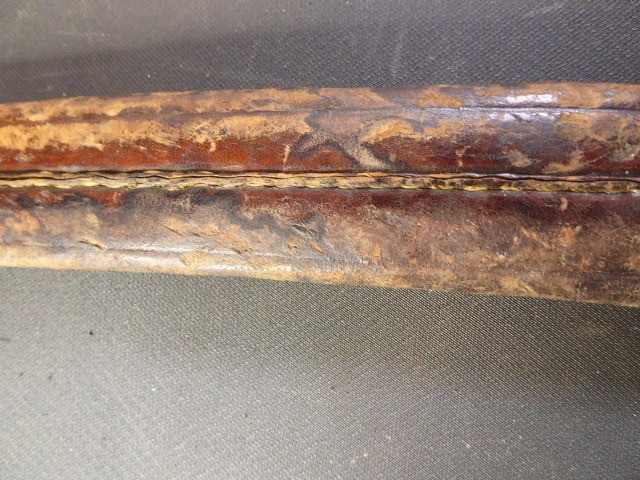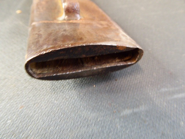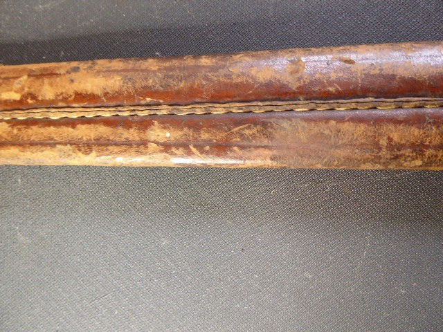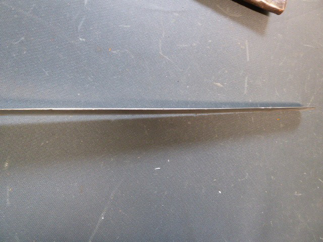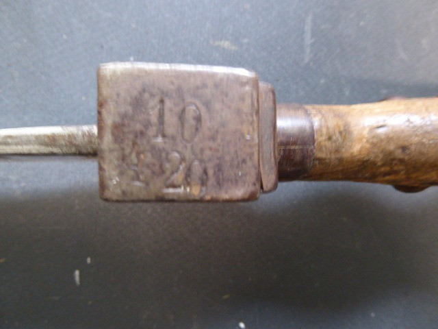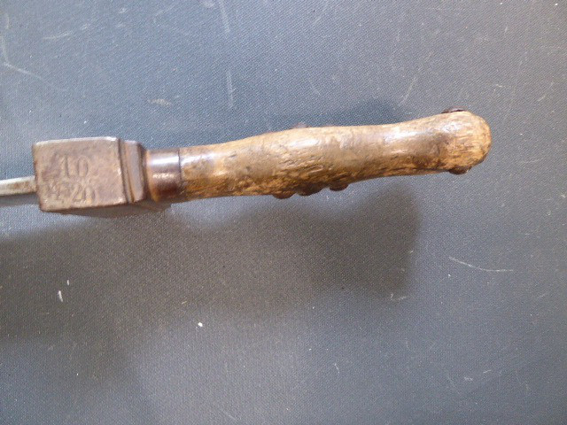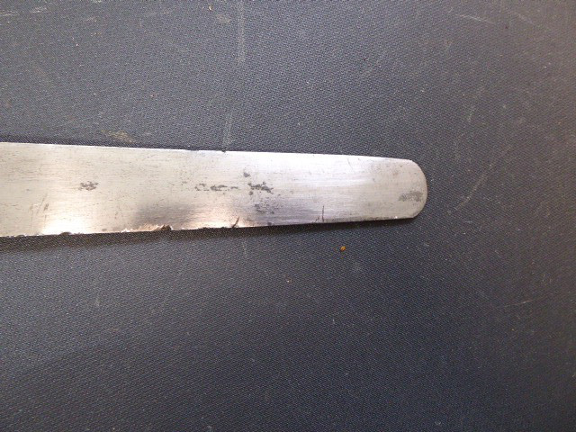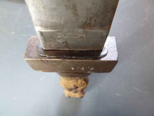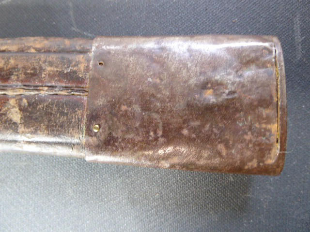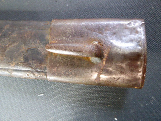 Aus meiner Sammlung gebe ich, ein altes Unbekanntes Faschinen Messer Lederscheide Hersteller AUGUST SCHNEIDER BERLIN ab. Kenner werden es sicherlich wissen wo das Teil einzuordnen ist. Griff Holz Beidseitig mit Eisennieten verziert, Griffabschluss Eisenplatte. Parierung Eisen mit Regiment Bezeichnung? K.2.1. auf der Stirnseite Nr.10420. Zweischneidige Klinge, vorne Rund, auf der Fehlschärfe Hersteller. Scheide Holz mit Leder ummantelt und zwei Eiserne Beschläge. Das Teil ist im Guten Sammelwürdigen Zustand. Alles andere entnehmen Sie Bitte den Fotos. Gesamtlänge:75,8 cm, ohne Scheide: 75,8 cm, Klingenlänge: 59 cm, Klingenbreite: 4,4 cm. Kann zu jederzeit bei mir besichtigt werden. Privatauktion keine Rücknahme und Garantie.
