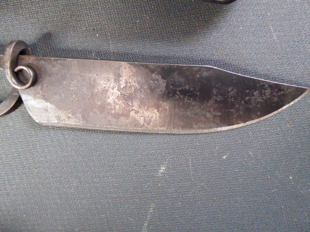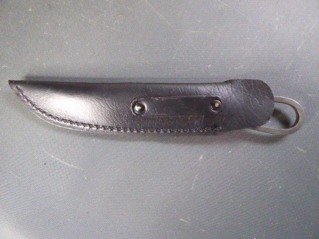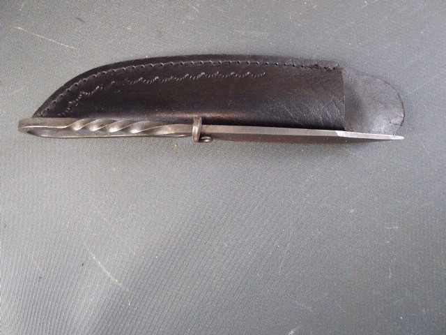 Aus meiner Sammlung gebe ich, ein Handgemachtes Wikinger Messer Unikat mit schwarzer Lederscheide ab. Messer Handarbeit, aus einem Stück geschmiedet. Sehr Gut erhaltene scharfe Klinge. Schwarze Lederscheide mit Gürtelschlaufe. Das Teil ist im sehr Guten zu gebrauchenden und Sammelwürdigen Zustand. Alles andere entnehmen Sie Bitte den Fotos. Messer mit Scheide: 28,5 cm, ohne Scheide: 23,5 cm, Klingenlänge: 12 cm, Klingenbreite: 3 cm. Kann zu jederzeit bei mir besichtigt werden. Privatauktion keine Rücknahme und Garantie.