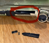 Tarnlackierung, Trageriemen montiert, Ladegerät, Visier, 1x Magazin, Nachlader + Kugeln.